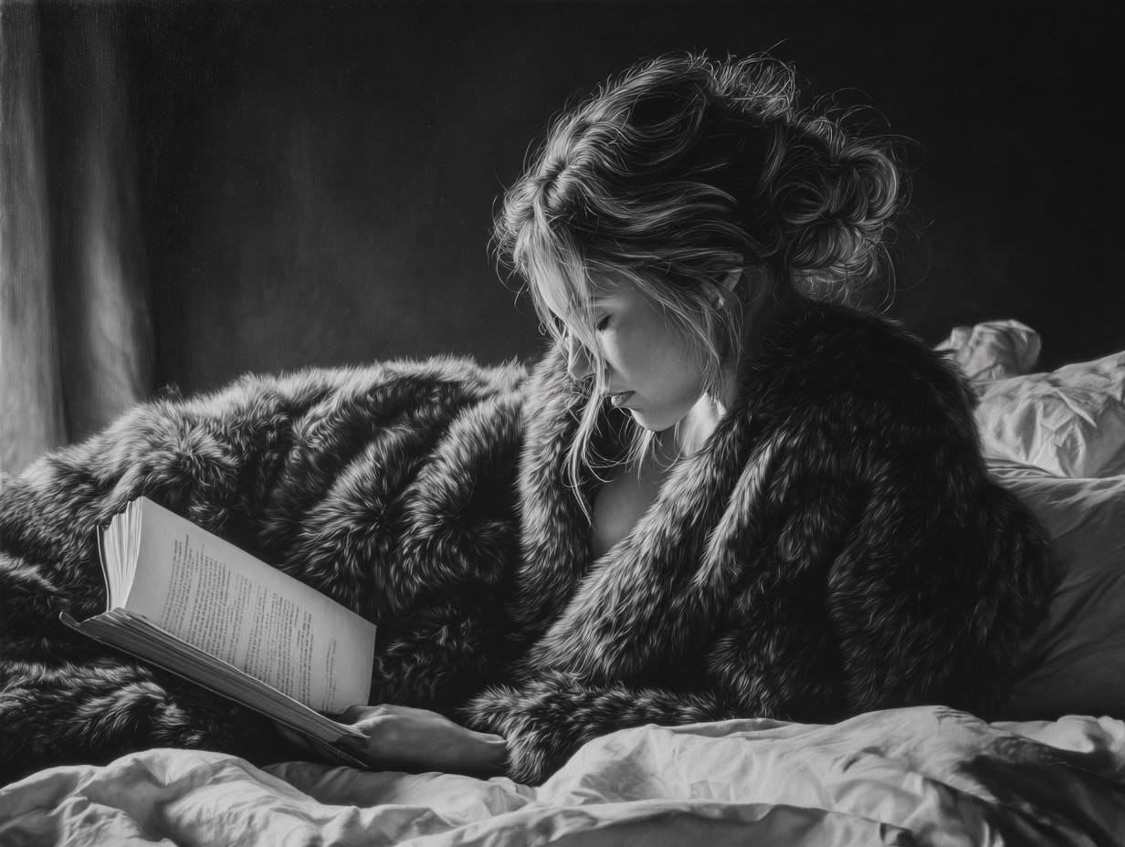 I jumped up, eager to please Daddy. I grabbed my book from my room, and ran to Daddy’s room to wait for his return. We have separate bedrooms but we sleep together in his room most of the time. I’ve just always found solace in having a space of my own, where I can go when I need to. I’m a bit of a night owl, so sometimes I cuddle with Daddy until he falls asleep, and then sneak out to work in my studio or read in my room until I fall asleep. My room is also a bit chaotic, like I am, and Daddy’s is more organized and neat, like he likes it.